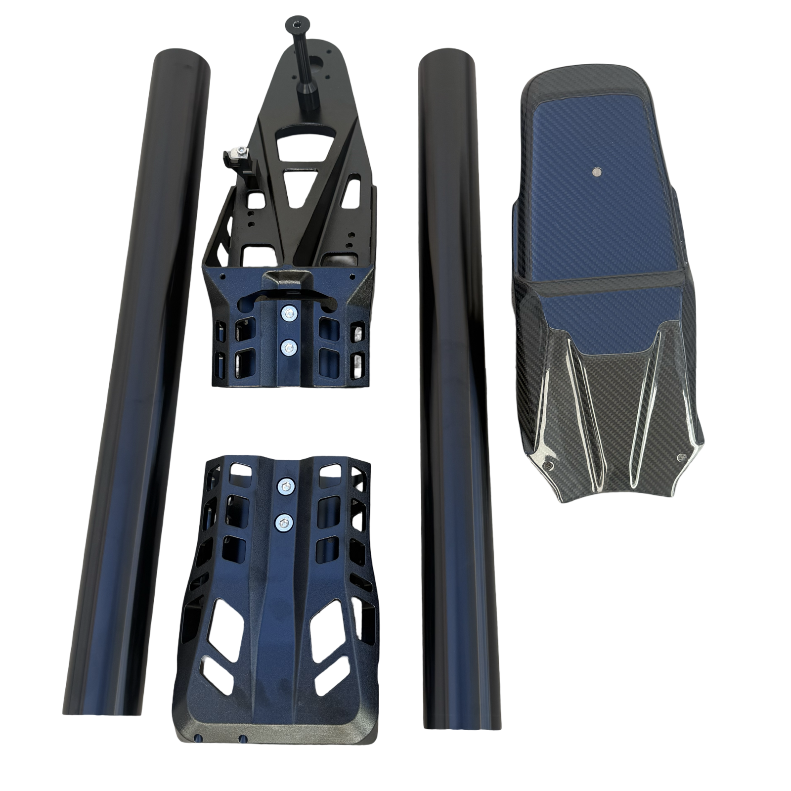 Handle pole, 26" pole tubes, steering stop, steering cable holder, and chin pad.