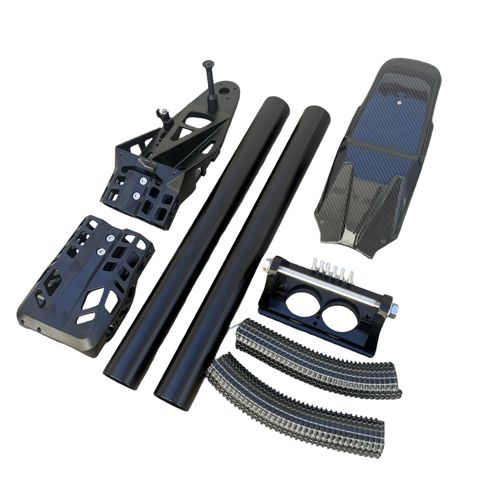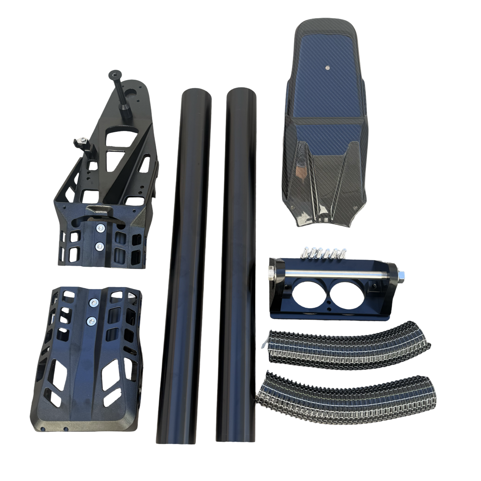 Handle pole, 26" pole tubes, steering stop, steering cable holder, pole bracket, breather tubes, pole bolt and chin pad.